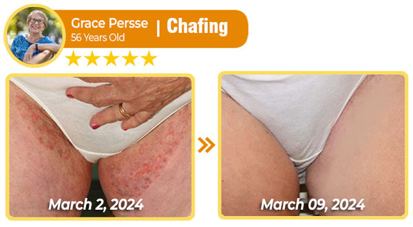 "Having chafing is the worst, the itchiness is unbearable, and it's so embarrassing trying not to scratch when I’m out in public. Wearing pants just makes it worse! I found this cream online and decided to give it a try. Honestly, it worked wonders relieved the itch within minutes, and the inflamed area started calming down right away. After just five days, the irritation was completely gone, with no marks left behind. So glad I tried this!" - Grace Persse, Chicago, USA