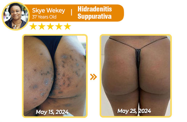 "Dealing with Hidradenitis suppurativa has been such a painful experience, especially with those red, swollen lumps that make sitting so uncomfortable. I tried everything meds, oils, sprays but nothing really worked. I was ready to settle for managing it long term until I found this cream. It eased the pain fast, and after just three days, the swelling went down a lot. The dark patches have lightened up, and my skin feels so much smoother, not thickened anymore. Now, it’s almost completely cleared up, and I feel so much relief!" - Skye Wekey, Los Angeles, USA