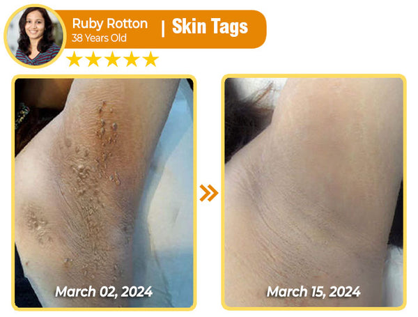 "I had some stubborn skin tags under my arms that were so uncomfortable, especially with the daily friction. I knew surgery was an option, but it's just so pricey. I came across this cream online and thought, why not give it a try? Honestly, it’ work! After just two days, the tags started to get thinner and darker, and a few days later, most of them had fallen off. The best part? No pain and no scars left behind. I never thought such a cost effective cream could be such a great solution" - Ruby Rotton, New York, USA